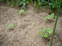 つるなしインゲンですが、古い種を使ったからか、全然発芽しない場所がありました。