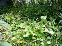 台風で倒れていなくても、ネットに絡みついたツルをはずすのは大変そうです。