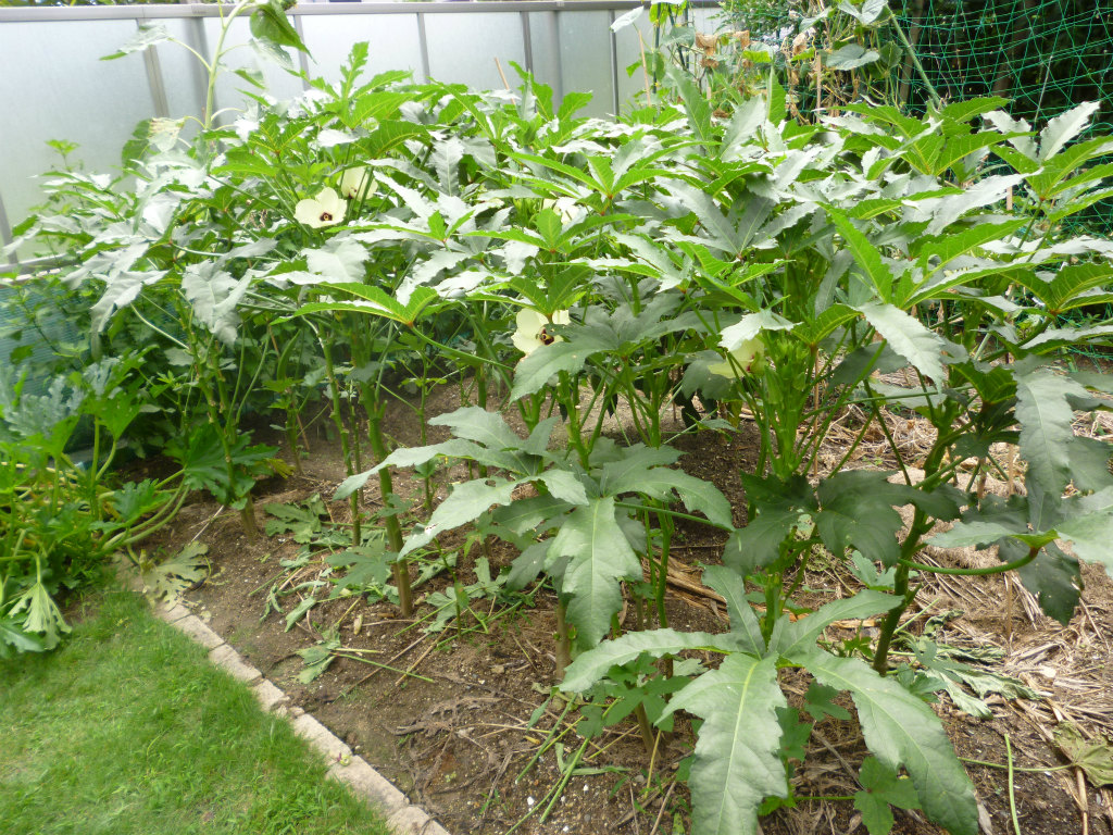 オクラですが、生長しすぎて畑がウッソウとしてきました・・。