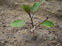 ナスですが、定植時からほとんど大きくなっていないようです。