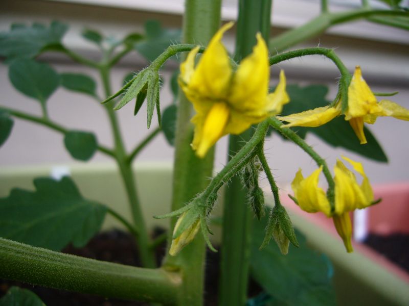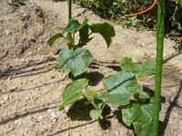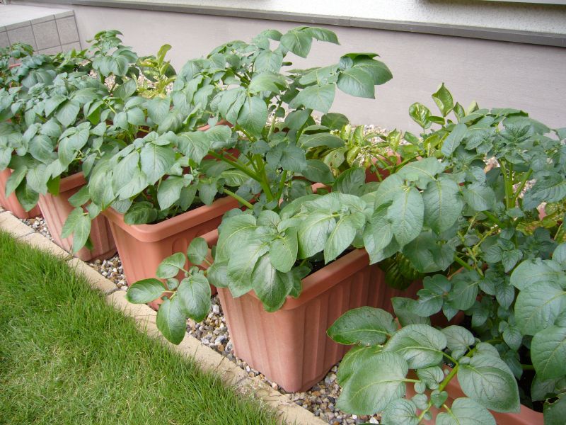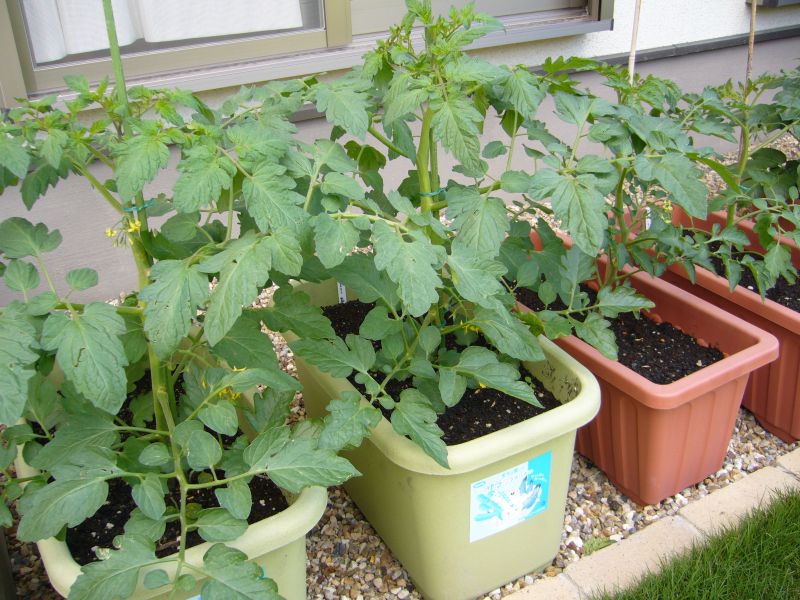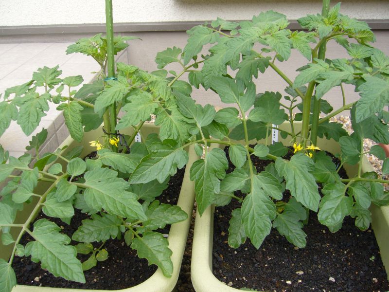 ジャガイモの様子です。やはり陽のあたらないところは生長も遅くなり、葉も元気がないです。この後、再度プランターの向きを変えました。