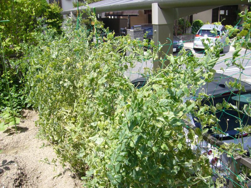 かなりの葉がかれてきて、新しい実もつかないので、エンドウはこれで終了にします。