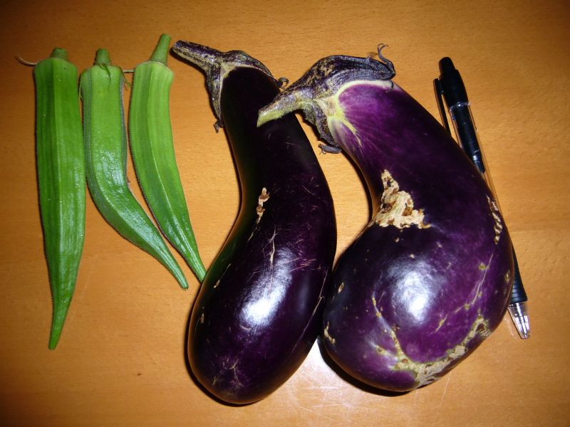 オクラはだんだんペースが上がってきましたが、逆にナスはペースが止まってきました。色つやもよくありません。2本の木の内、1本だけ剪定したのですが、残りも剪定したほうがよいかもしれません。
