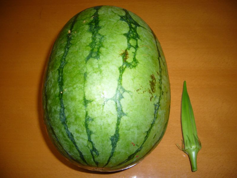 しかし、スイカは蔓が伸びるばっかりで全然実がなりませんね。結局収穫できたのはこの1コのみです。