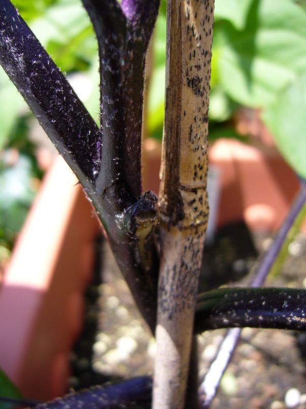 皮だけが残って茎の中身がなくなっていました(写真左の折れている茎)。