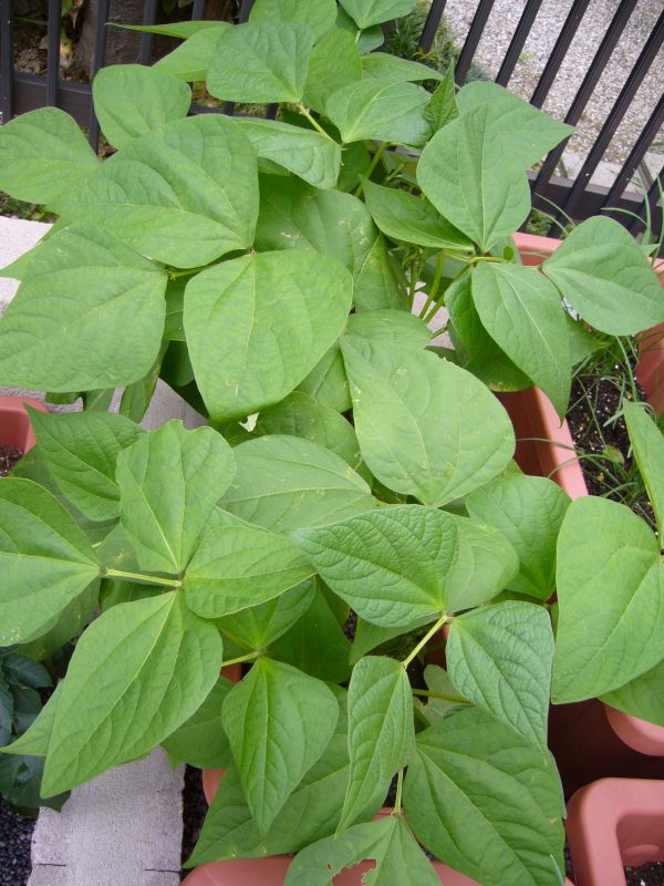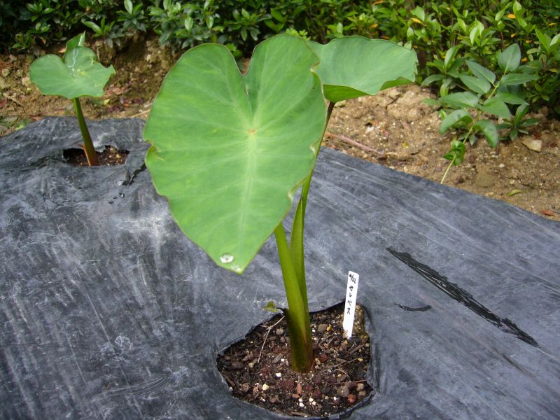 見覚えのある葉っぱが出てきて、サトイモらしくなってきました。