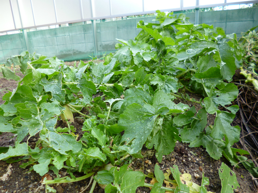 ダイコンは大きくなってはいるのですが、少し虫に食われてしまっています。