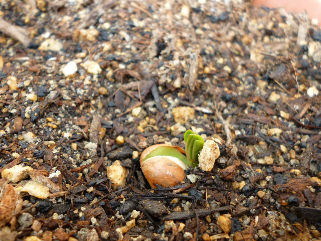 1week前に播種したラッカセイが発芽しました。