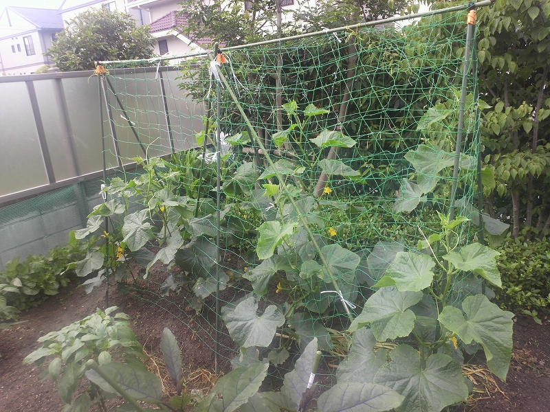 ここ何日か暖かい日が続いたせいか、キュウリが順調に生長しています。