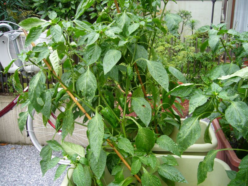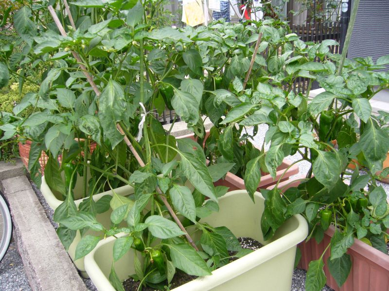 プランター4個でピーマンを育てていますが、プランターでも結構収穫できるものですね。一家庭には十分な量です。