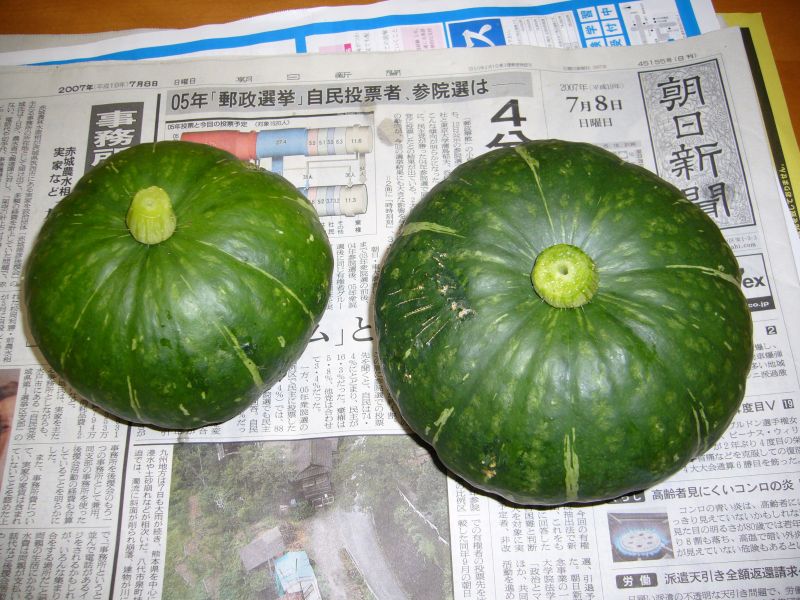 ミニカボチャ、二つとれました!!味はまだわかりませんが、おいしそうです。