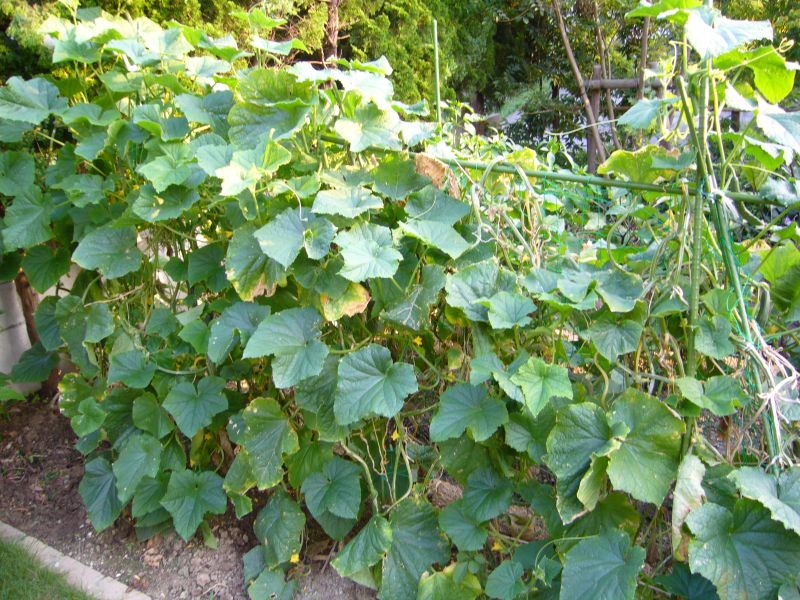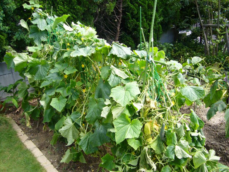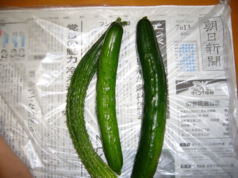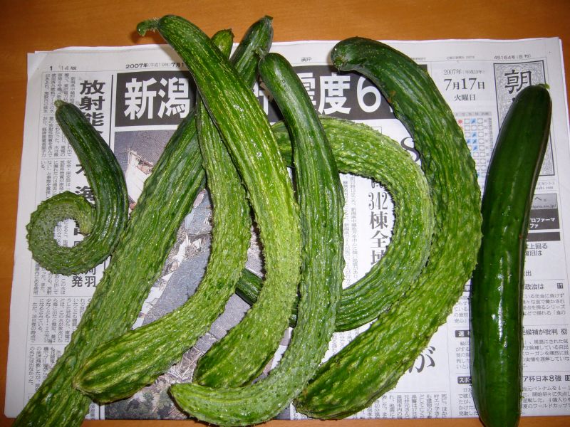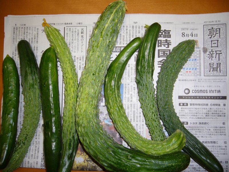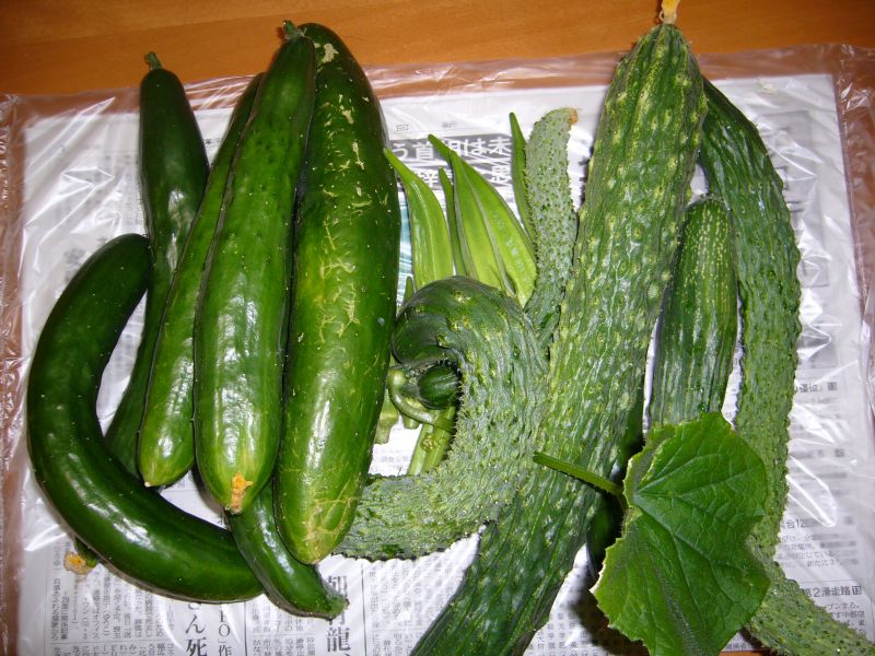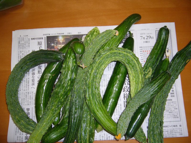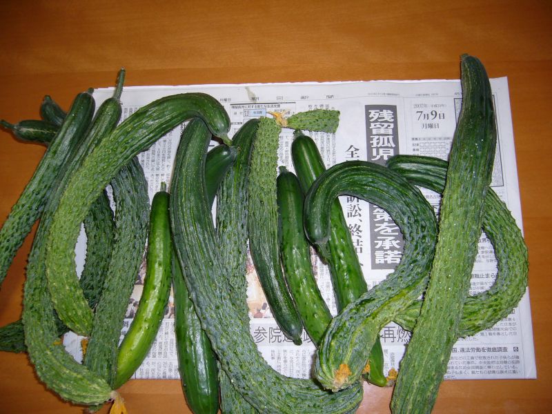 豊作です!!が、木曜日の大雨と土曜日の台風で、キュウリの支柱が倒れてしまいました。なんとか復旧しましたが、苗へのダメージが心配です。