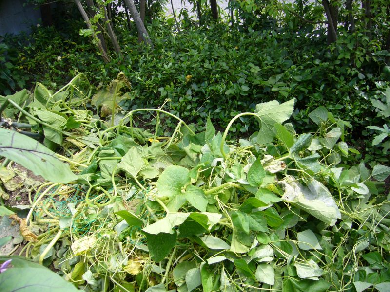 台風でインゲンがばったり倒れていました。復旧しようとしましたが、どうにもならず、インゲンはこれで終了にします。