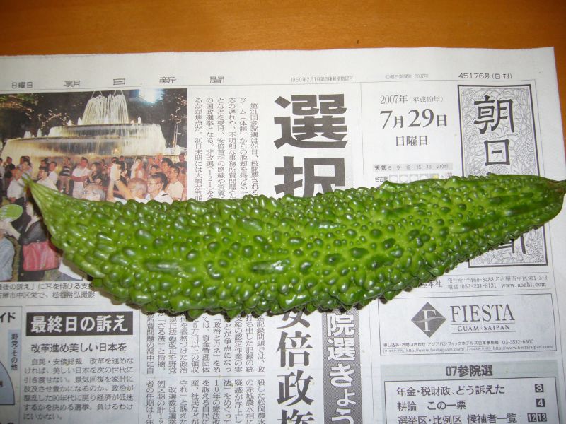 実は細々とゴーヤも育てていたのですが、気づいたら大きなゴーヤが出来てました。収穫したのですが、調理方法が分かりません。やっぱりゴーヤーチャンプルーがおいしいのかなー?研究します。
