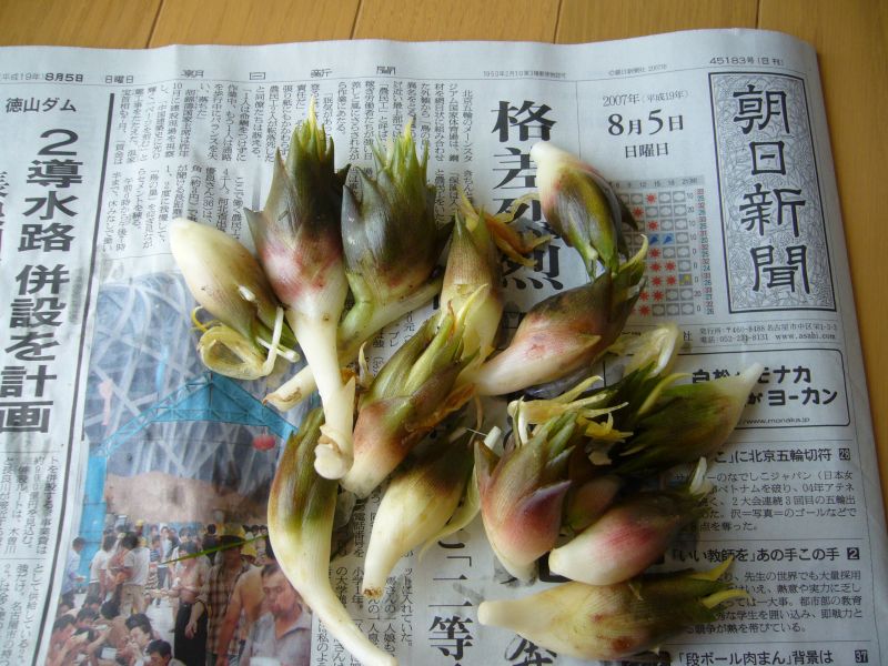 ミョウガを庭の片隅で育てているのですが、ふと生え際をみてみたらミョウガが生えていました!!早速収穫しました。