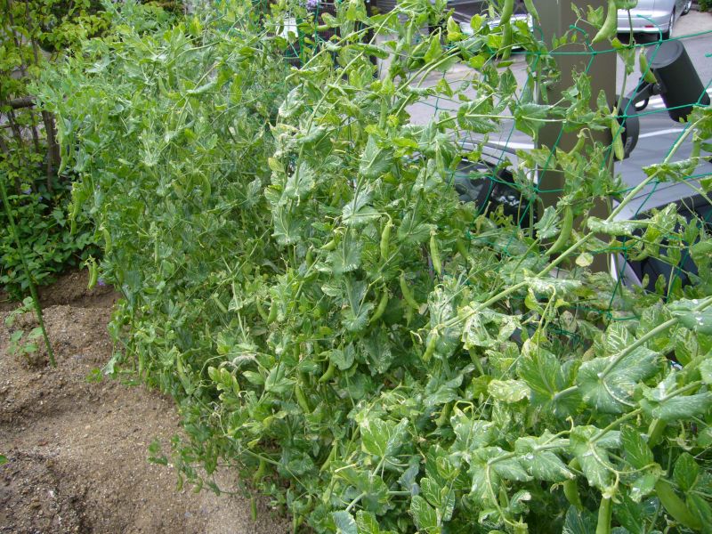 かなりの葉がかれてきて、新しい実もつかないので、エンドウはこれで終了にします。