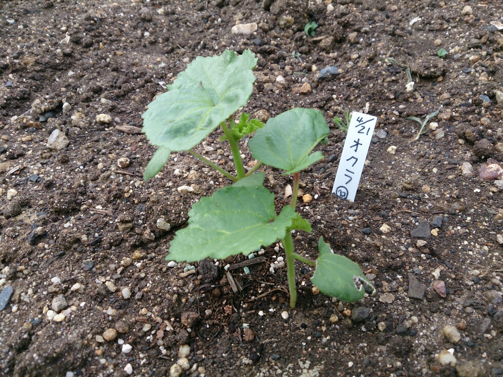 4/21に播種したオクラが発芽しました。