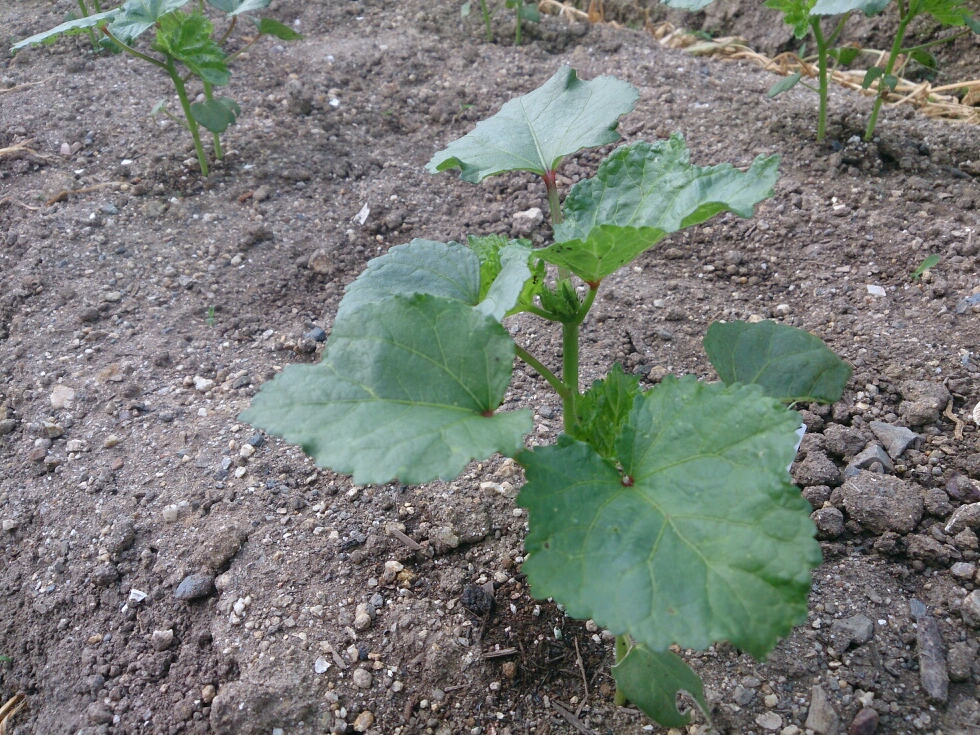 ポットで育てていたオクラを植え付けしました。