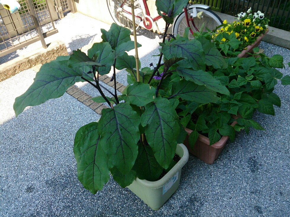 今年はプランターでナスを育てています。