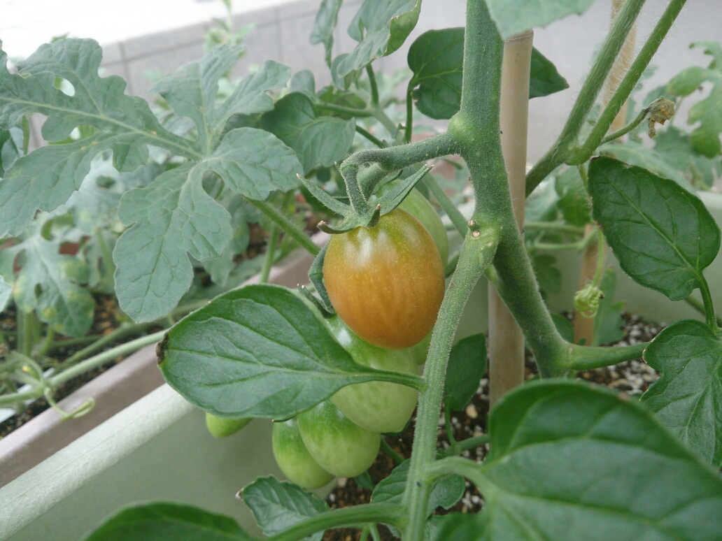 ミニトマトは一番下の実が赤くなってきました。