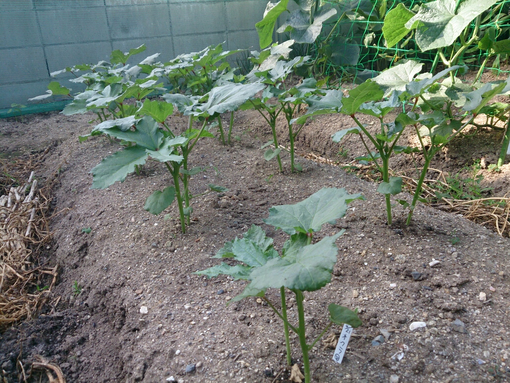 少し前に植え付けしたオクラは心配した害虫の被害もなく順調です。