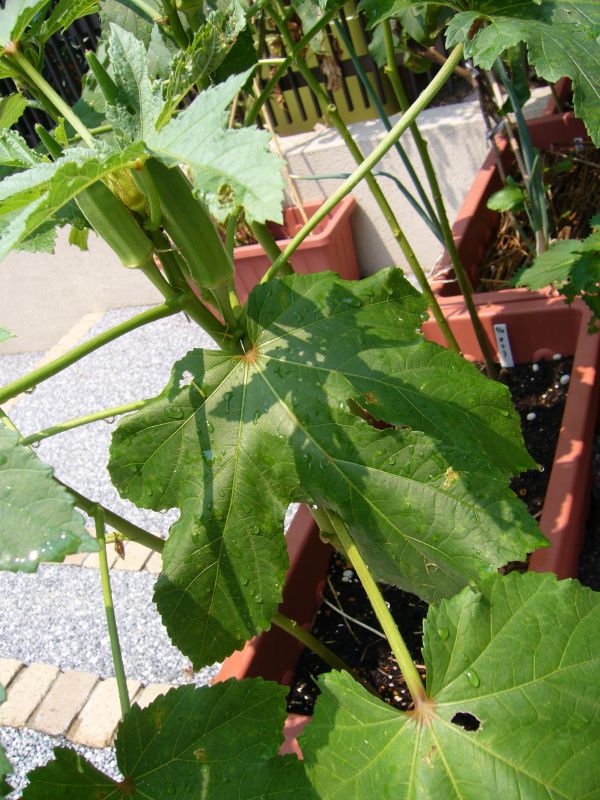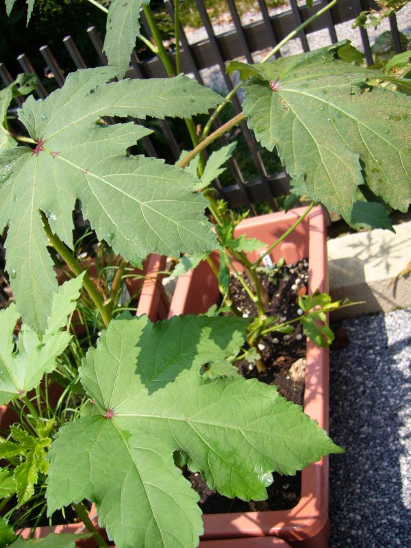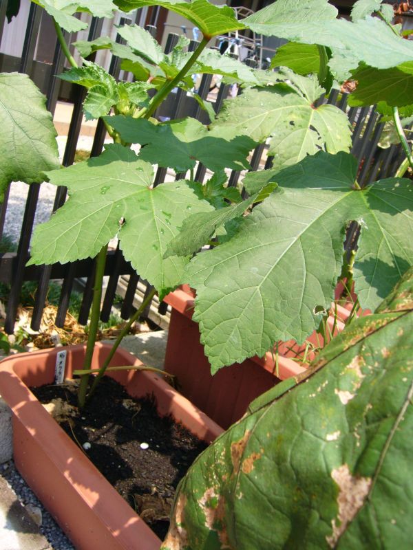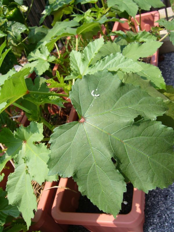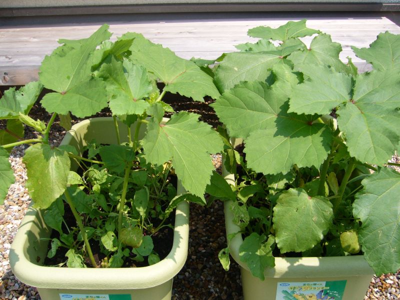 遅れてナスしたプランター(2、3コ)のオクラも徐々に大きくなっていますので、そのうちたくさん収穫できるようになりそうです。