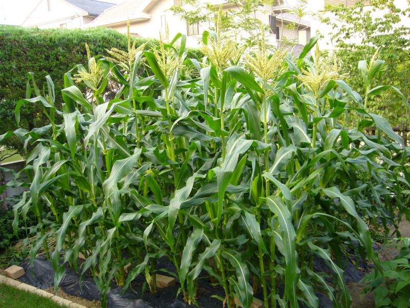 トウモロコシはますます鬱蒼としてきて、背丈が大きいもので2.3m程になってきました・・・。