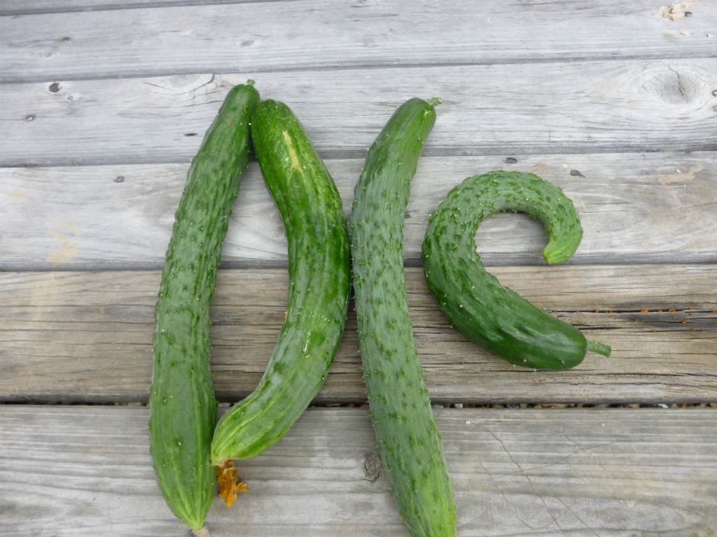 本日のキュウリの収穫は4本でした。