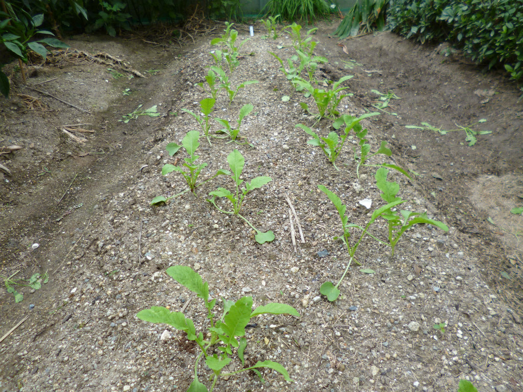 ダイコンは2回めの間引きをし、1本立ちにしました。