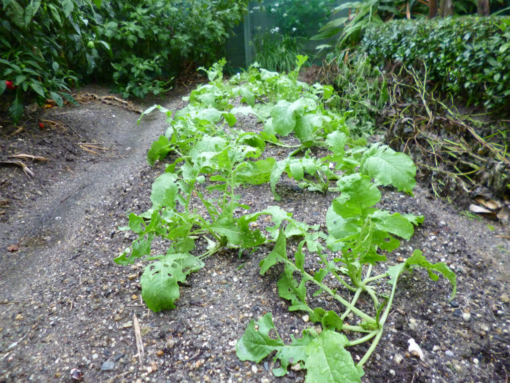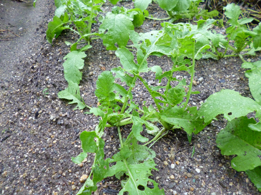 ダイコンは大きくなってはいるのですが、少し虫に食われてしまっています。