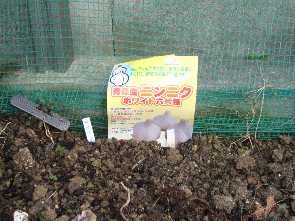 買ってきたニンニク(売れ残りが100円だったので衝動買い)+今年の春に収穫したニンニクの残りを植え付けしました。