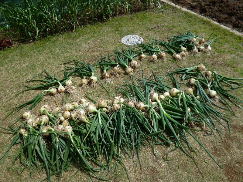 すこし早いですが、タマネギを収穫しました。