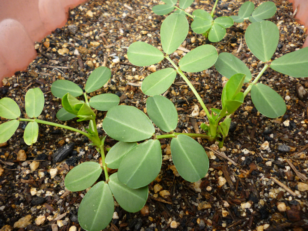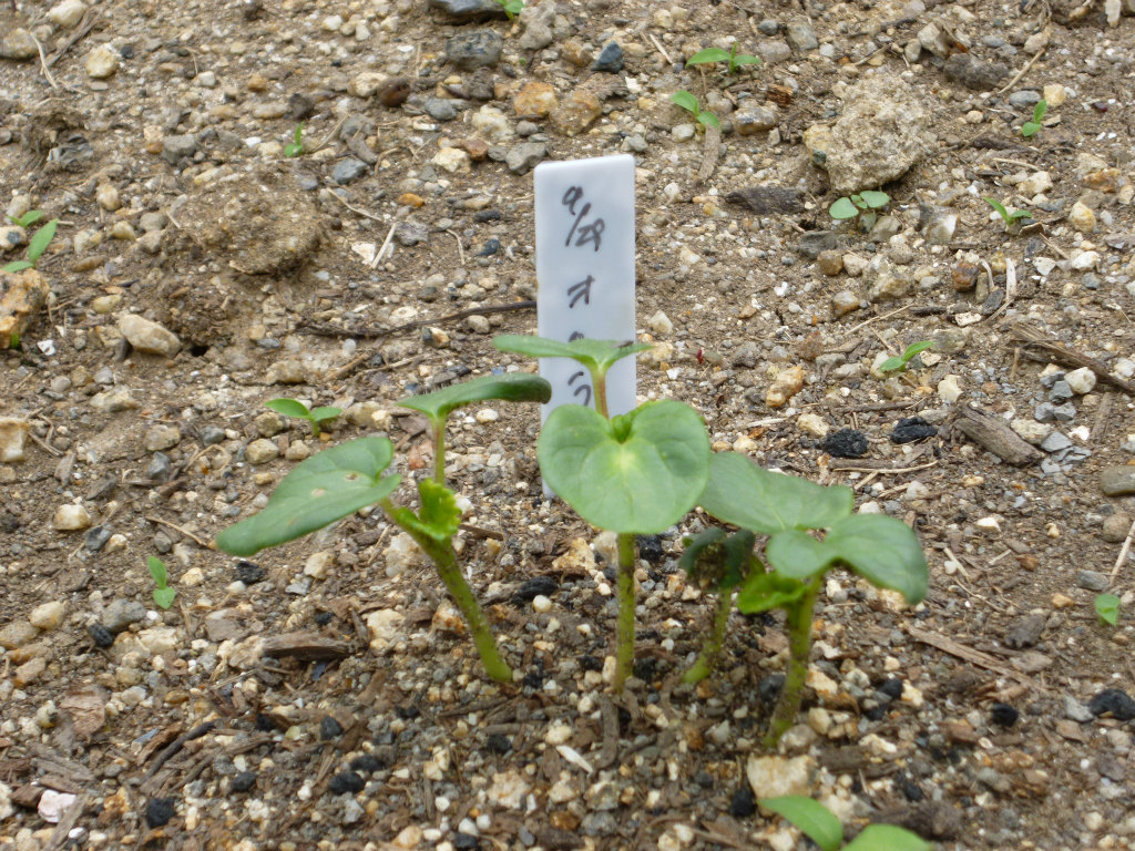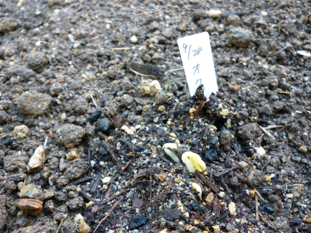 1week前に播種したラッカセイが発芽しました。