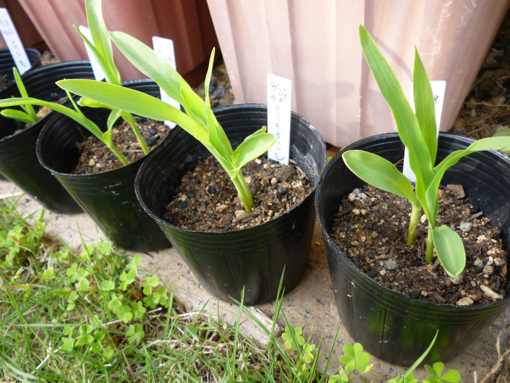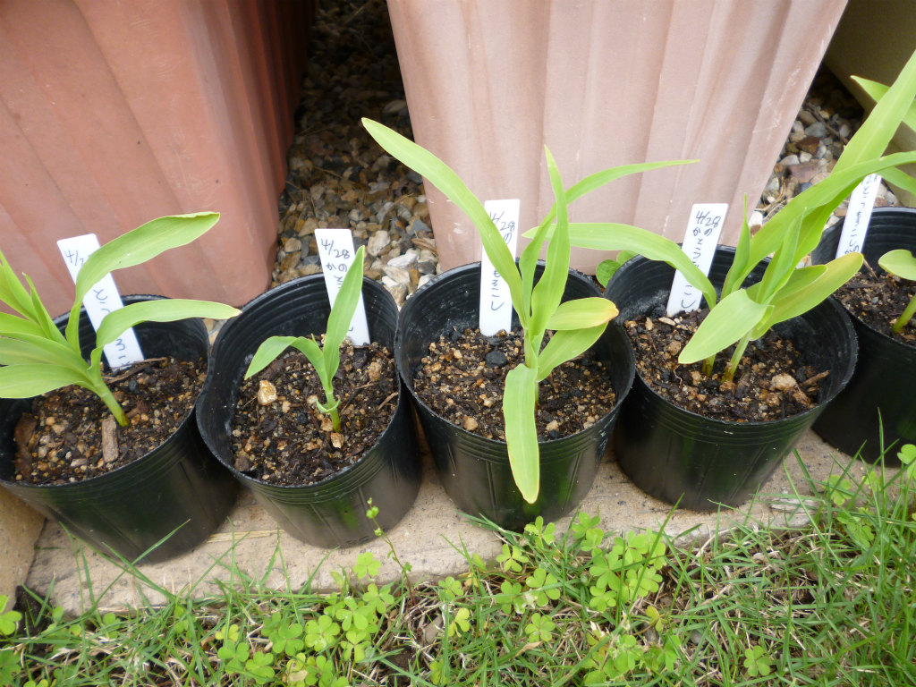 ポットで育苗しているトウモロコシですが、来週には植え付け場所が確保できそうなので、そちらに植え付け予定です。