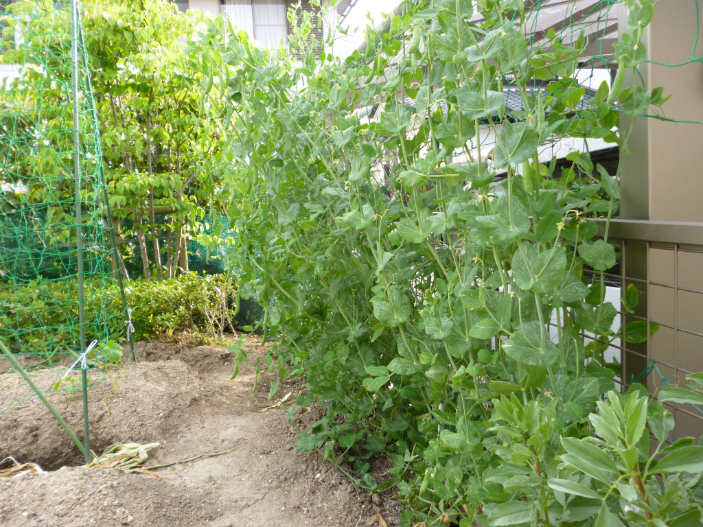 エンドウが終了したら、この場所にはトウモロコシとゴーヤを植える予定です。