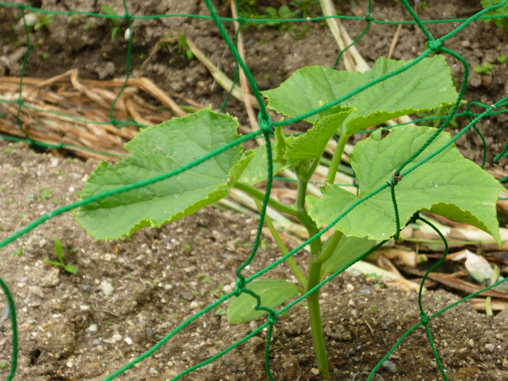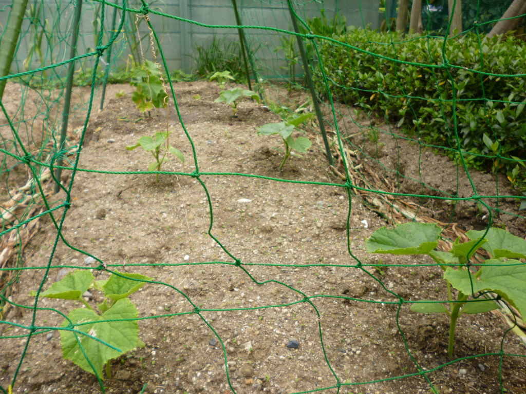 4月末に播種したゴーヤの苗を植え付けしました。