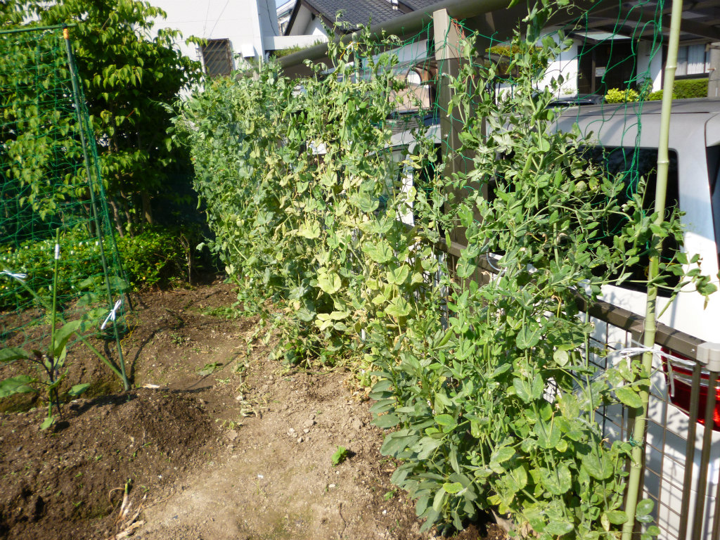 エンドウは多分今週で終わってしまいそうなので、来週にはこの場所にゴーヤとトウモロコシの苗を植え付け予定です。